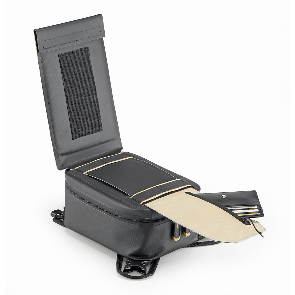 Die Givi Tanktasche hat ein Volumen von 3 Liter. Sie besitzt ein Hauptfach, und ein großes transparentes Fach für das Smartphone oder Landkarte.