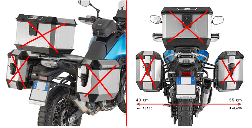 Der Seitenkofferträger wird ohne Topcaseträger und ohne Koffer geliefert.