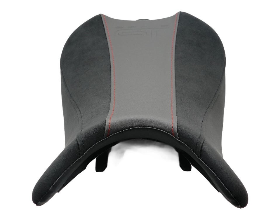 Suzuki Original zweifarbiger Premium Fahrersitz mit Roter Naht und GSX-S GT Logo für einen sportlicheren Look.