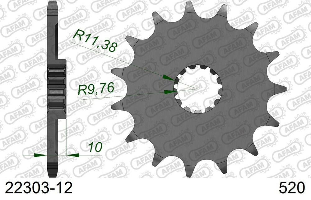 - vorne AFAM 520 Stahl Kettenrad / Ritzel 12 Zähne