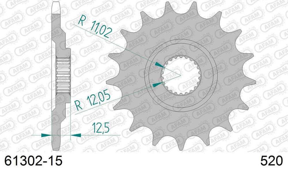 - vorne AFAM 520 Stahl Kettenrad / Ritzel 15 Zähne