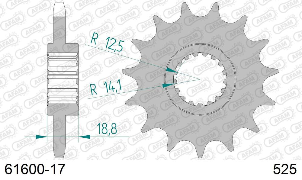 - vorne AFAM 525 Stahl Kettenrad / Ritzel 17 Zähne