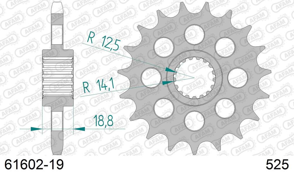 - vorne AFAM 525 Stahl Kettenrad / Ritzel 19 Zähne