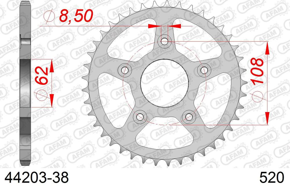 - hinten AFAM 520 Stahl Kettenrad 38 Zähne