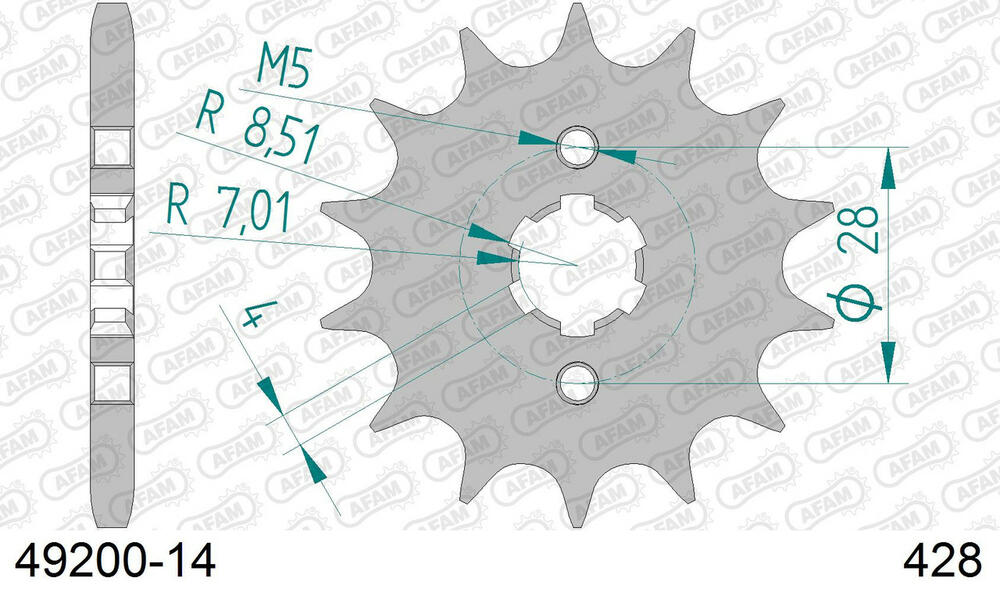 - vorne AFAM 428 Stahl Kettenrad / Ritzel 14 Zähne