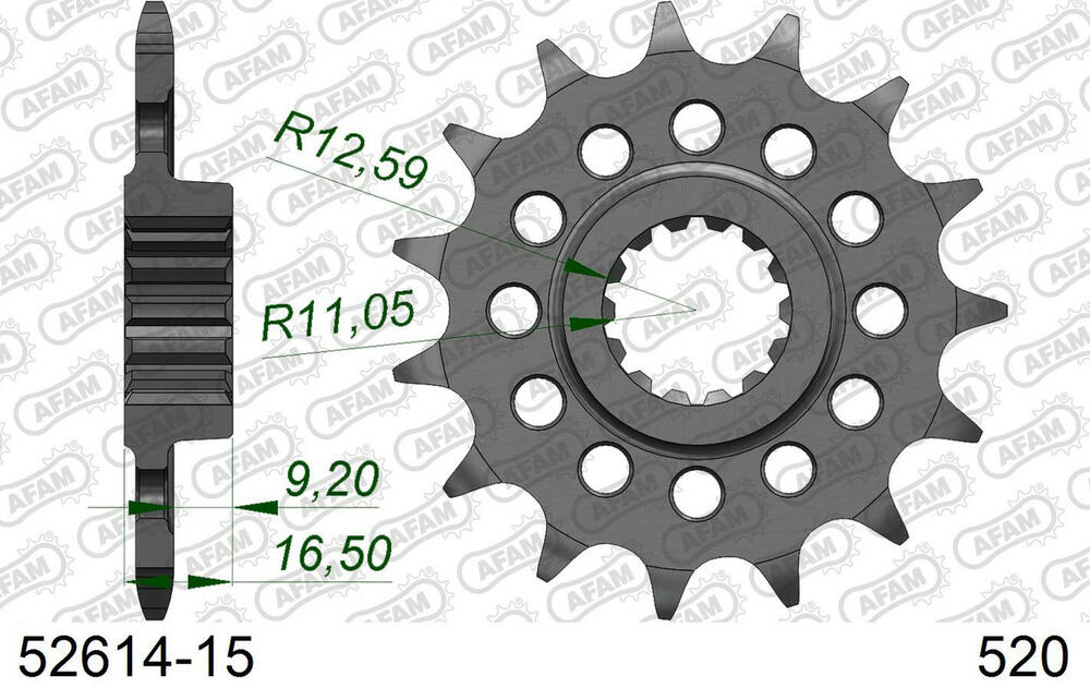 - vorne AFAM 520 Stahl Kettenrad / Ritzel 15 Zähne