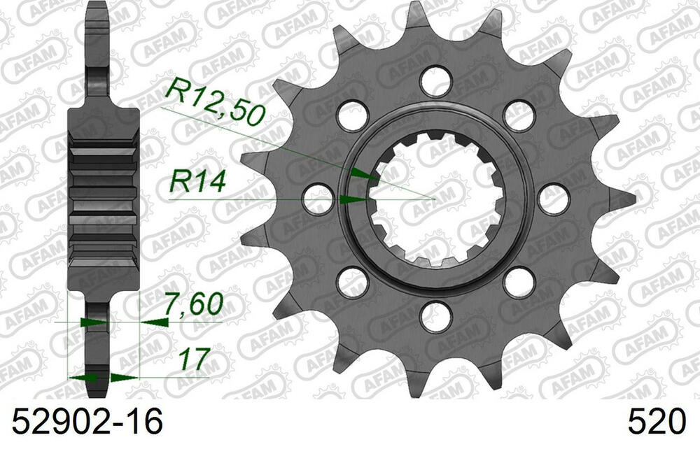 - vorne AFAM 520 Stahl Kettenrad / Ritzel 16 Zähne