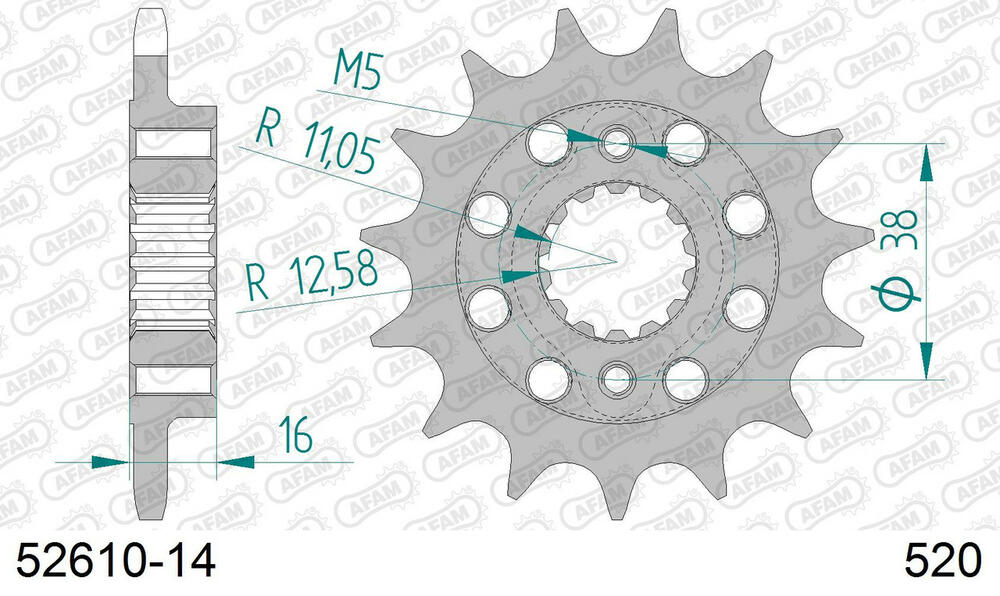 - vorne AFAM 520 Stahl Kettenrad / Ritzel 14 Zähne