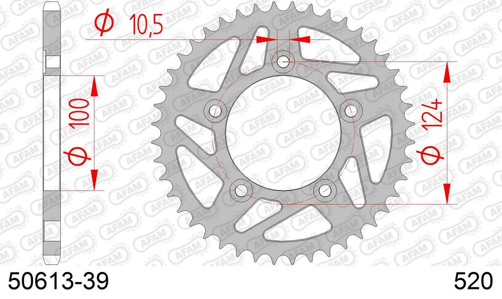 - hinten AFAM 520 Stahl Kettenrad 39 Zähne