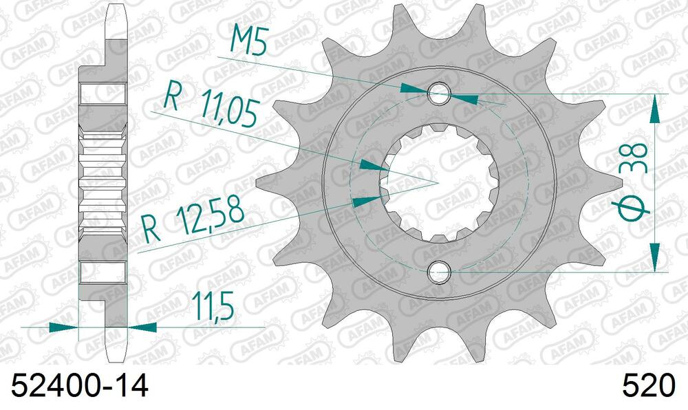 - vorne AFAM 520 Stahl Kettenrad / Ritzel 14 Zähne
