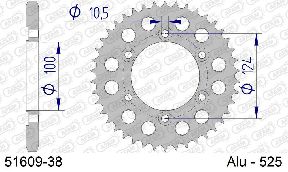 - hinten AFAM 525 Aluminium Kettenrad 38 Zähne
