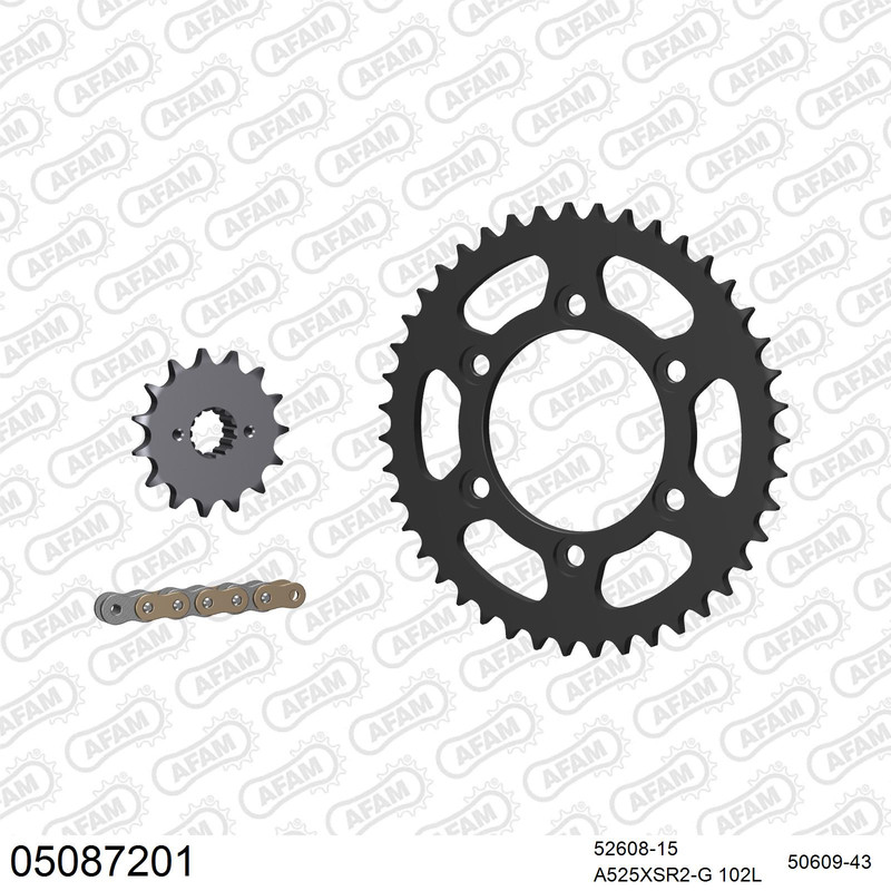 AFAM Kettenkit für Motorräder mit hochwertiger AFAM 525 Antriebskette vom Typ XSR2-G inklusive passendem Nietschloss (Hohlbolzen).