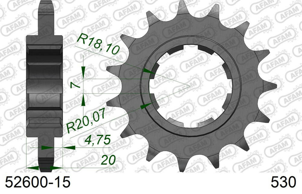 - vorne AFAM 530 Stahl Kettenrad / Ritzel 15 Zähne