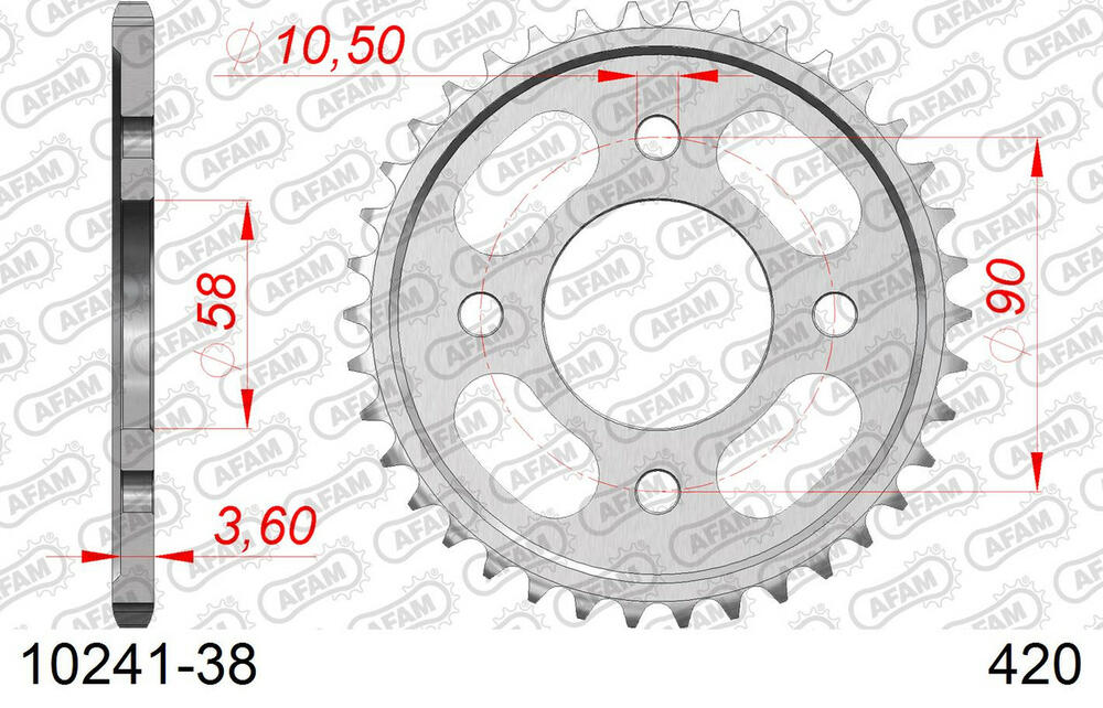 - hinten AFAM 420 Stahl Kettenrad 38 Zähne