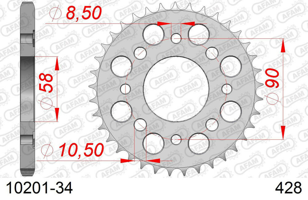 - hinten AFAM 428 Stahl Kettenrad 34 Zähne
