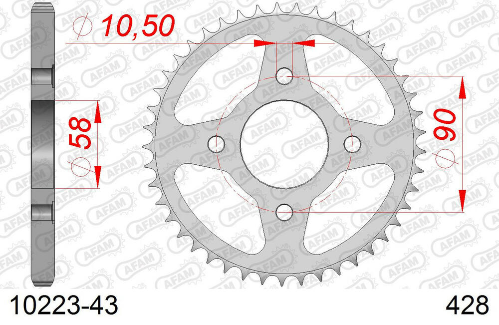 - hinten AFAM 428 Stahl Kettenrad 43 Zähne