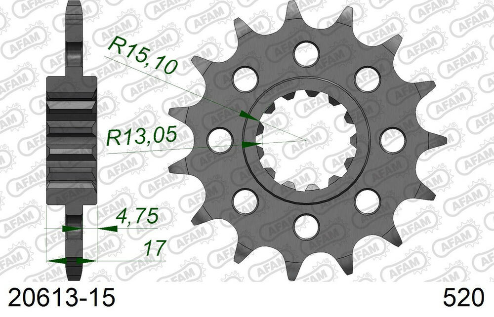 - vorne AFAM 520 Stahl Kettenrad / Ritzel 15 Zähne