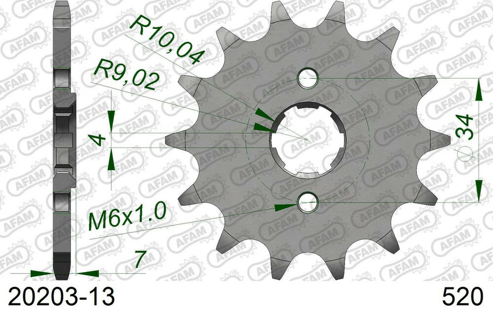 - vorne AFAM 520 Stahl Kettenrad / Ritzel 13 Zähne
