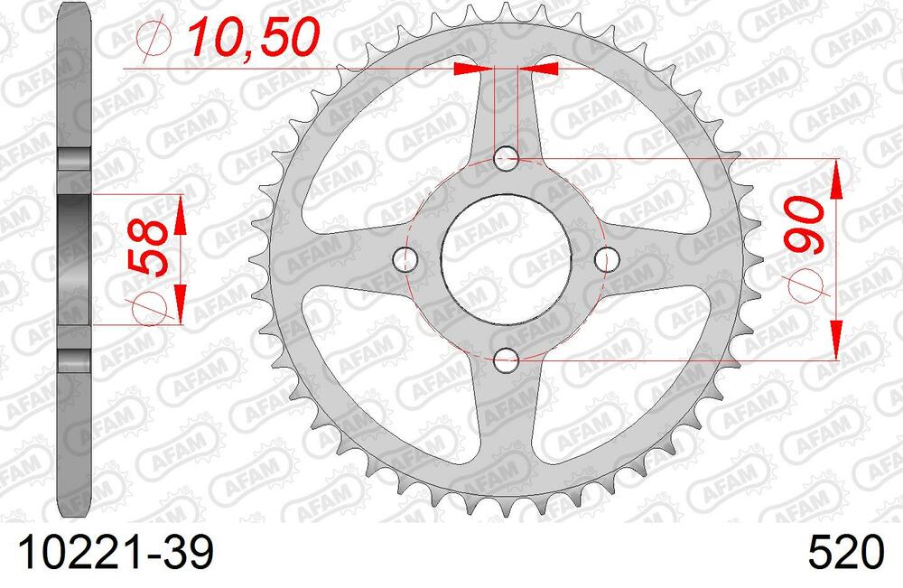 - hinten AFAM 520 Stahl Kettenrad 39 Zähne