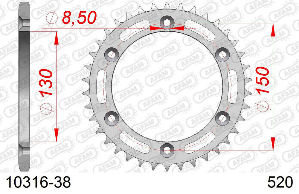 - hinten AFAM 520 Stahl Kettenrad 38 Zähne