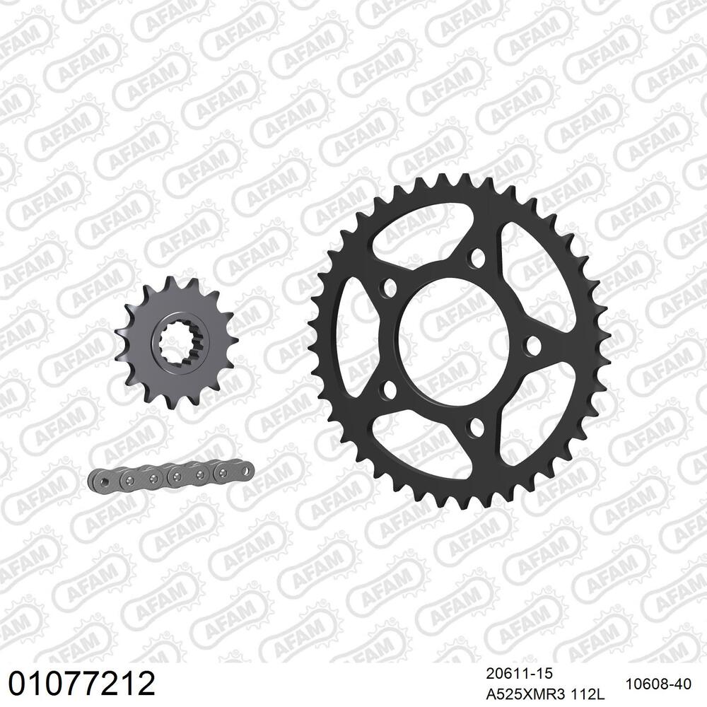 AFAM Kettenkit für Motorräder mit hochwertiger AFAM 525 Antriebskette vom Typ XMR3 inklusive passendem Nietschloss (Hohlbolzen).