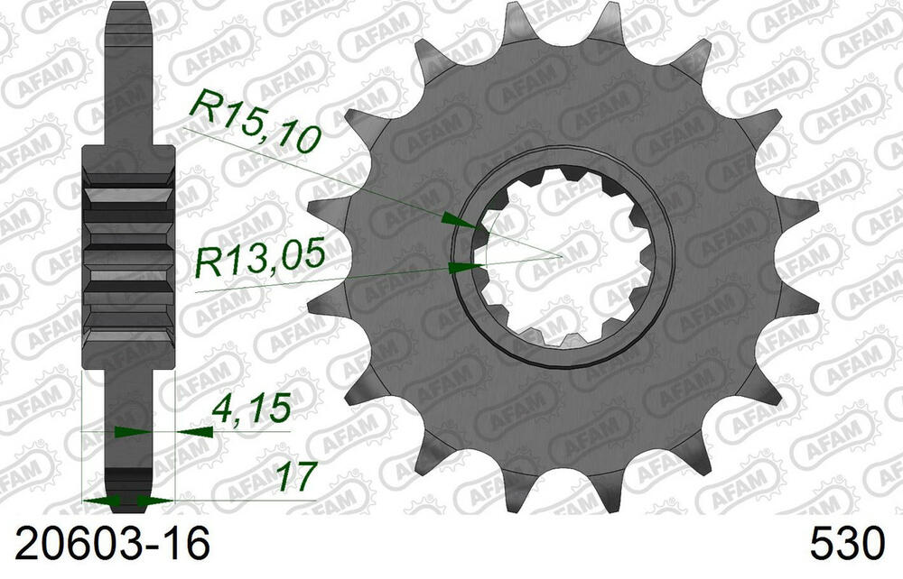 - vorne AFAM 530 Stahl Kettenrad / Ritzel 16 Zähne