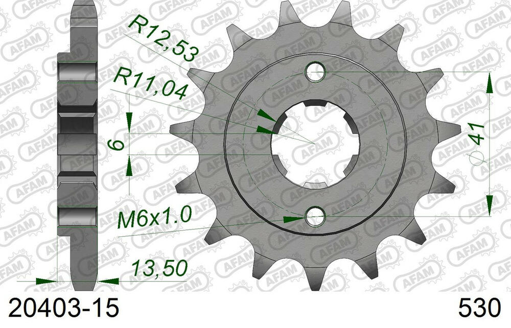 - vorne AFAM 530 Stahl Kettenrad / Ritzel 15 Zähne