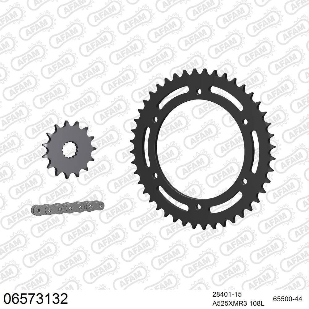 AFAM Kettenkit für Motorräder mit hochwertiger AFAM 525 Antriebskette vom Typ XMR3 inklusive passendem Nietschloss (Hohlbolzen).