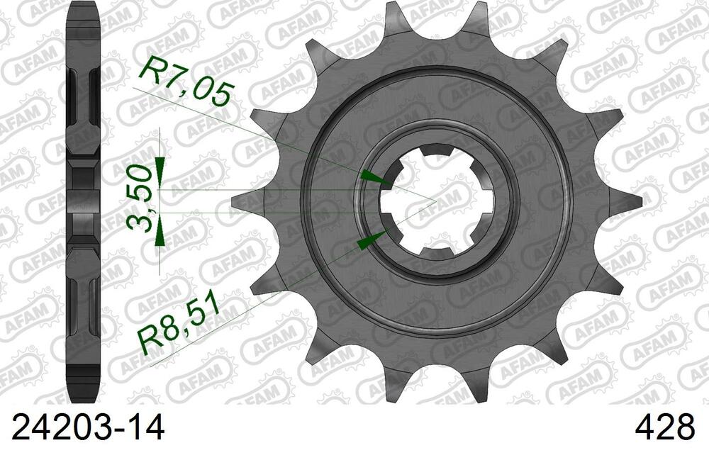 - vorne AFAM 428 Stahl Kettenrad / Ritzel 14 Zähne
