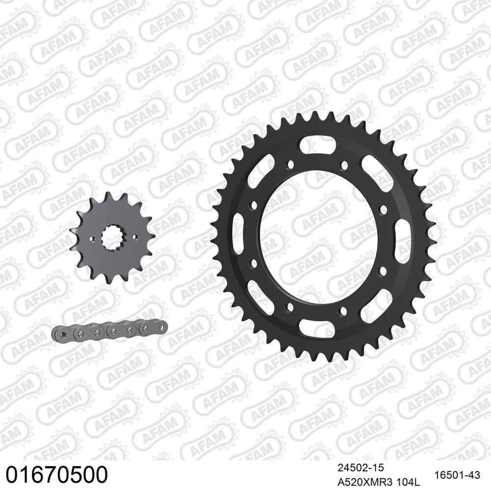 AFAM Kettensatz Stahl 520 XMR3 15x43 - Kawasaki KLR 600 1984-95 - 01670500