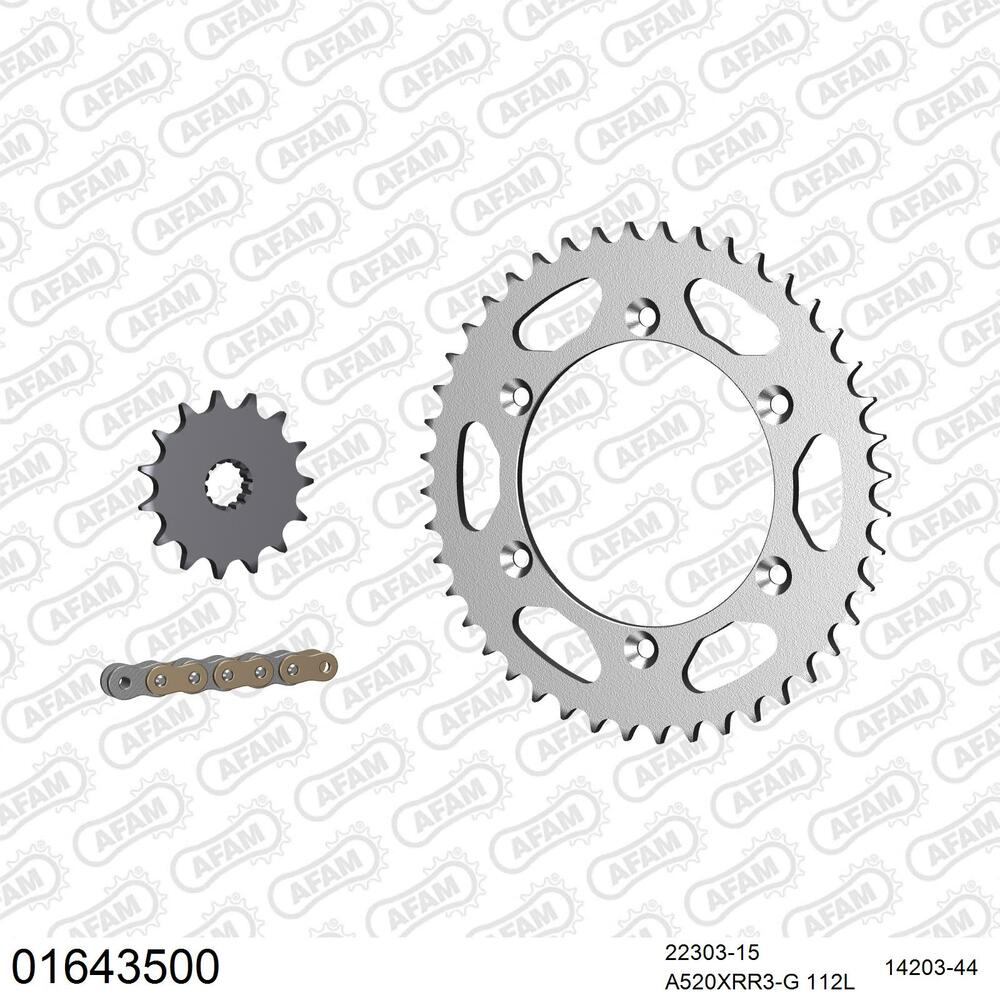 AFAM Kettensatz Stahl 520 XRR3-G 15x44 - Kawasaki KLX 400 SR 2003-04 - 01643500