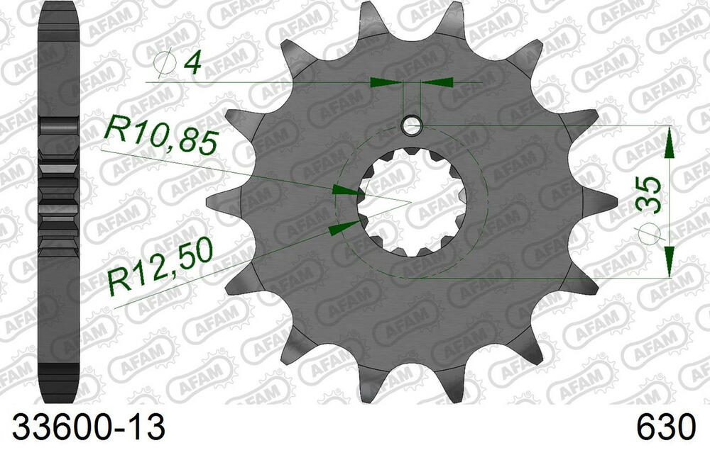 - vorne AFAM 630 Stahl Kettenrad / Ritzel 13 Zähne
