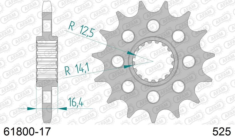 - vorne AFAM 525 Stahl Kettenrad / Ritzel 17 Zähne