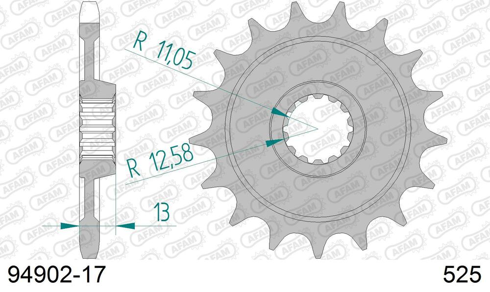 - vorne AFAM 525 Stahl Kettenrad / Ritzel 17 Zähne