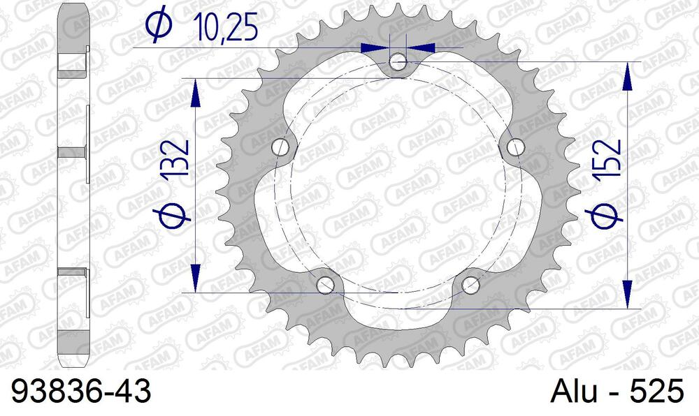 - hinten AFAM 525 Aluminium Kettenrad 43 Zähne