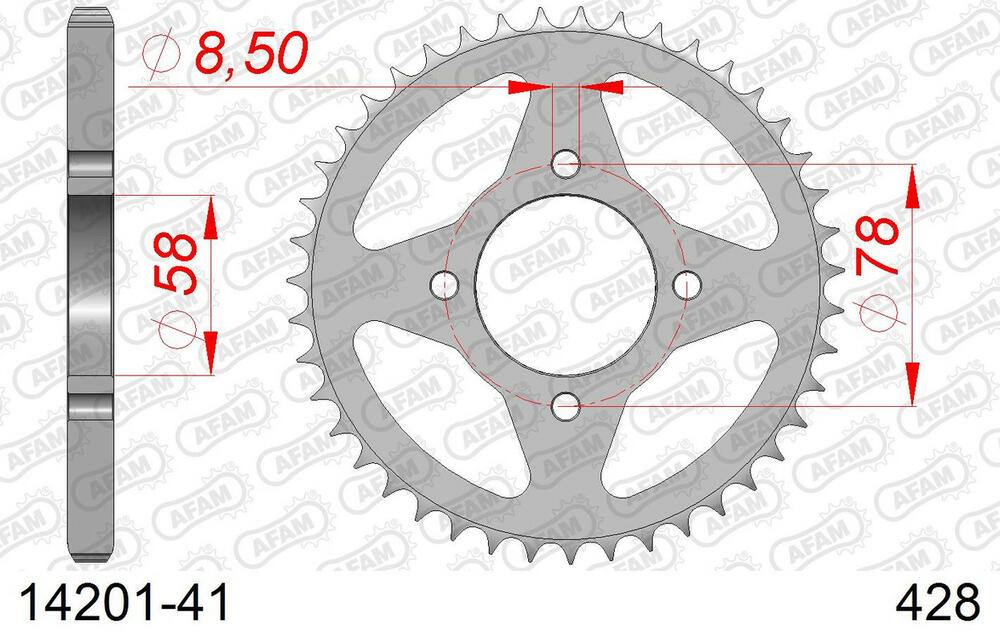 - hinten AFAM 428 Stahl Kettenrad 41 Zähne