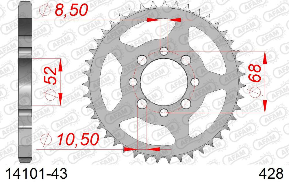 - hinten AFAM 428 Stahl Kettenrad 43 Zähne