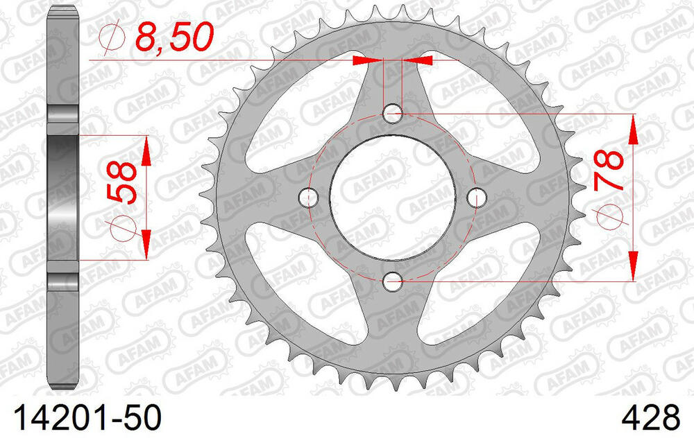 - hinten AFAM 428 Stahl Kettenrad 50 Zähne
