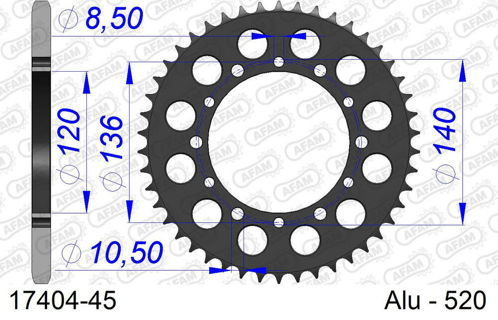 - hinten AFAM 520 Aluminium Kettenrad 45 Zähne