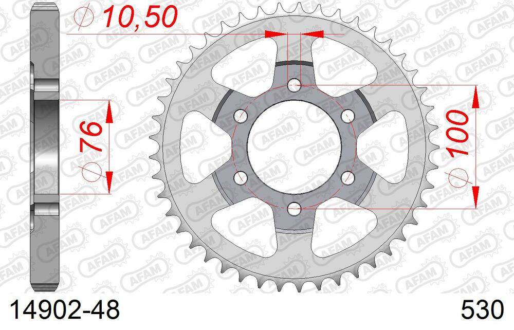 - hinten AFAM 530 Stahl Kettenrad 48 Zähne