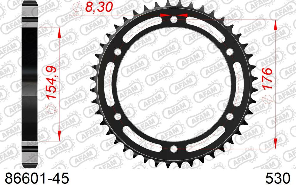 - hinten AFAM 530 Stahl Kettenrad 45 Zähne