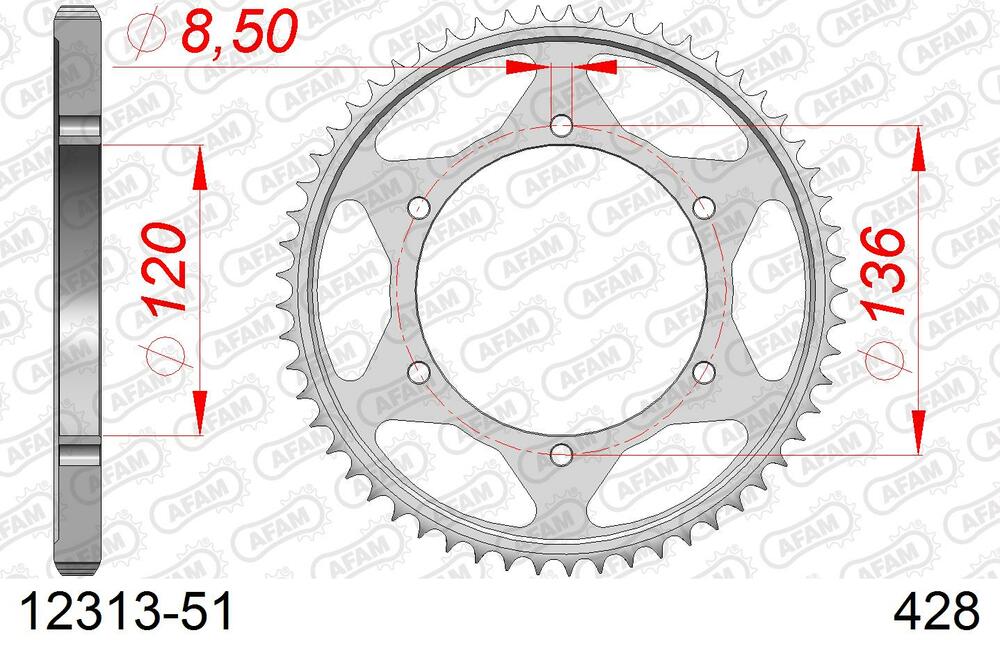 - hinten AFAM 428 Stahl Kettenrad 51 Zähne