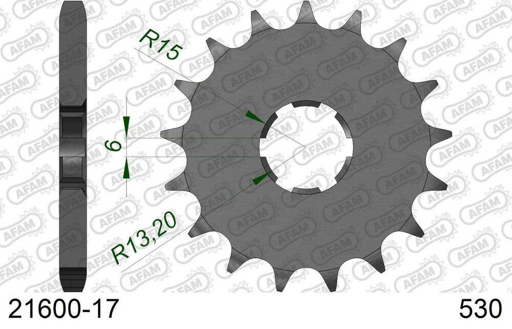 - vorne AFAM 530 Stahl Kettenrad / Ritzel 17 Zähne