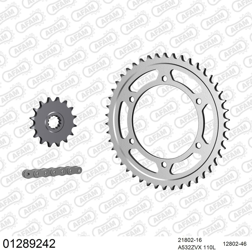 AFAM Kettenkit für Motorräder mit hochwertiger AFAM 532 Antriebskette vom Typ ZVX inklusive passendem Nietschloss (Hohlbolzen).