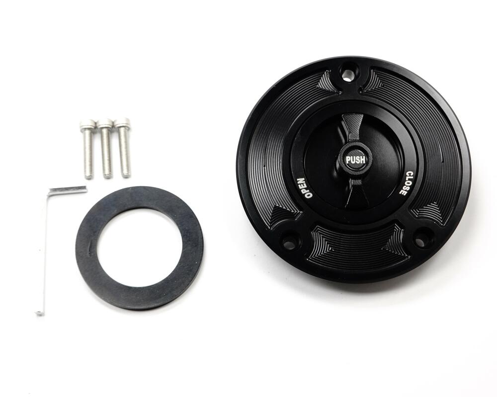 Racing Tankdeckel aus Aluminium CNC gefräst und schwarz Eloxiert, ideal für Rennstrecken Motorräder ohne Schlosssatz.