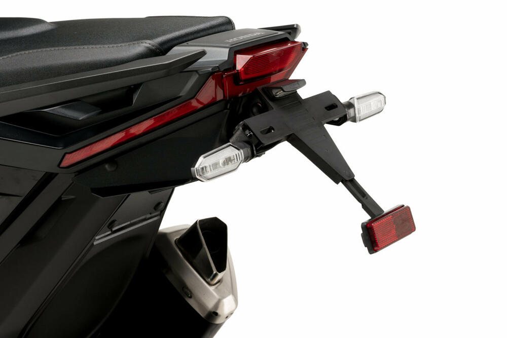 Hochwertiger Kennzeichenhalter für Motorrad im Set mit LED Kennzeichenbeleuchtung und Rückstrahler.