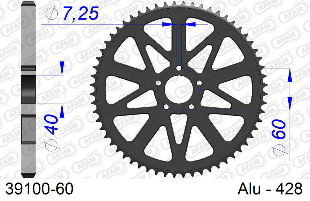 - hinten AFAM 428 Aluminium Kettenrad 60 Zähne