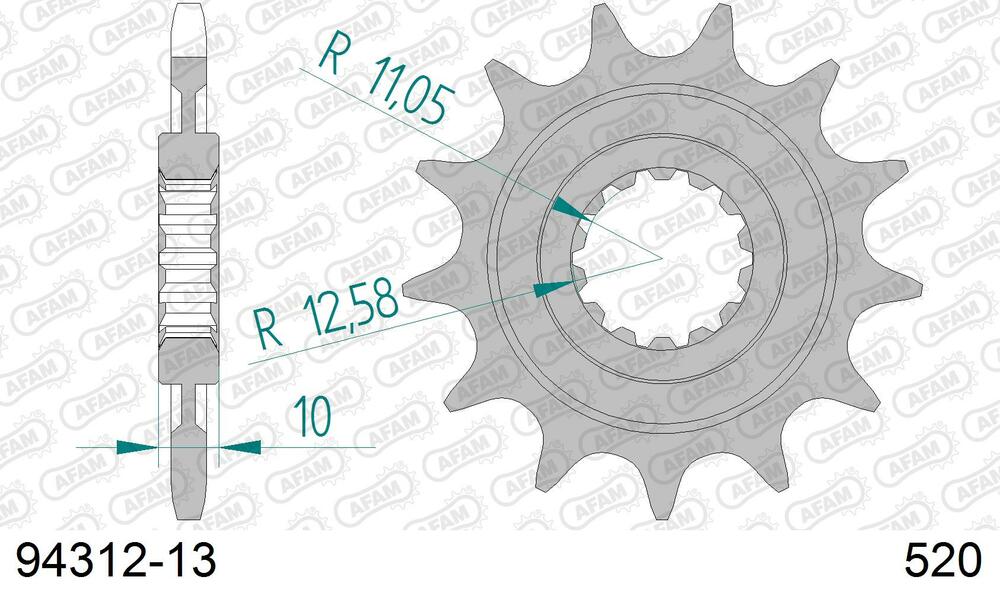 - vorne AFAM 520 Stahl Kettenrad / Ritzel 13 Zähne
