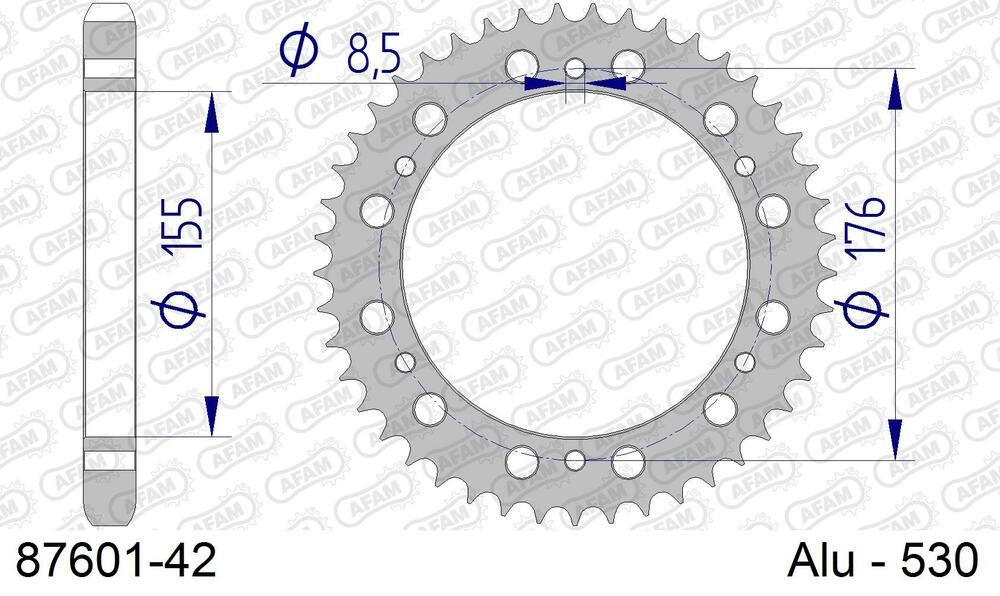 - hinten AFAM 530 Aluminium Kettenrad 42 Zähne