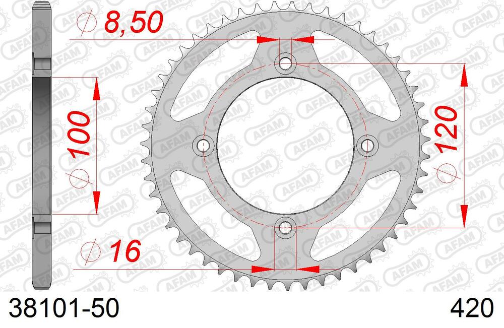 - hinten AFAM 420 Stahl Kettenrad 50 Zähne